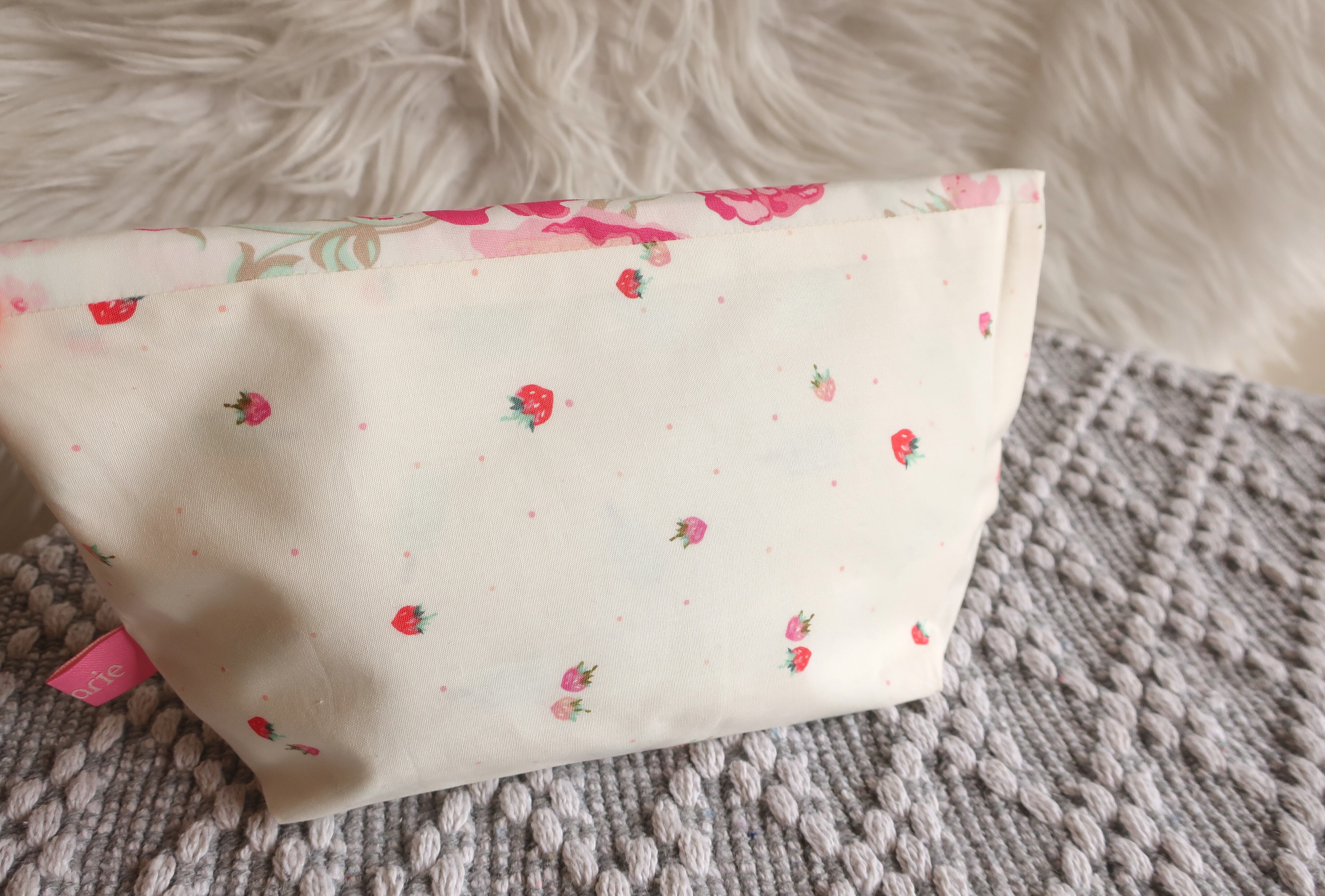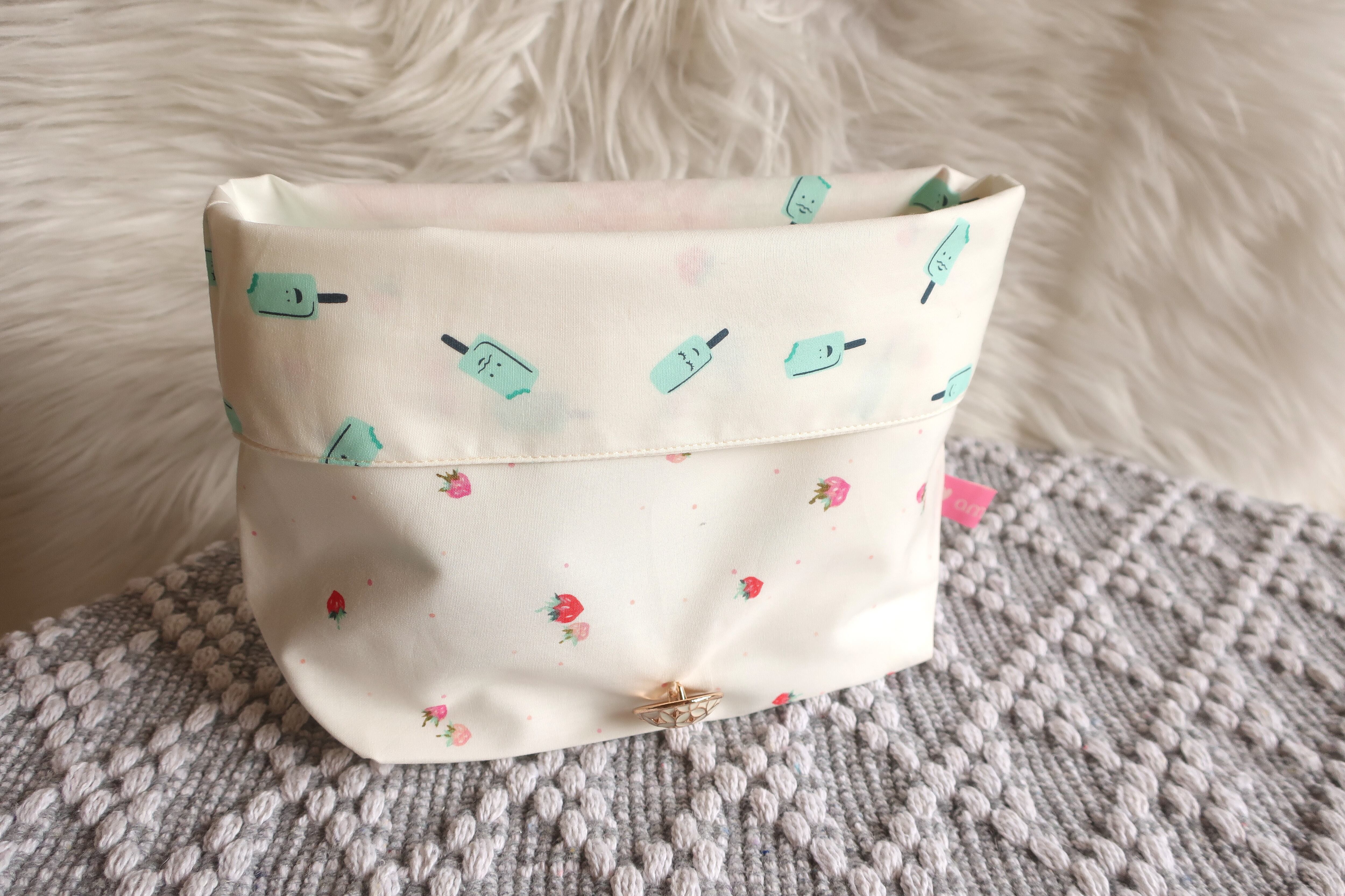 布ナプキンポーチ/お弁当袋/メイクポーチ★マルチに使えるプレミアムコットンのポーチ【イチゴ&アイスさん】