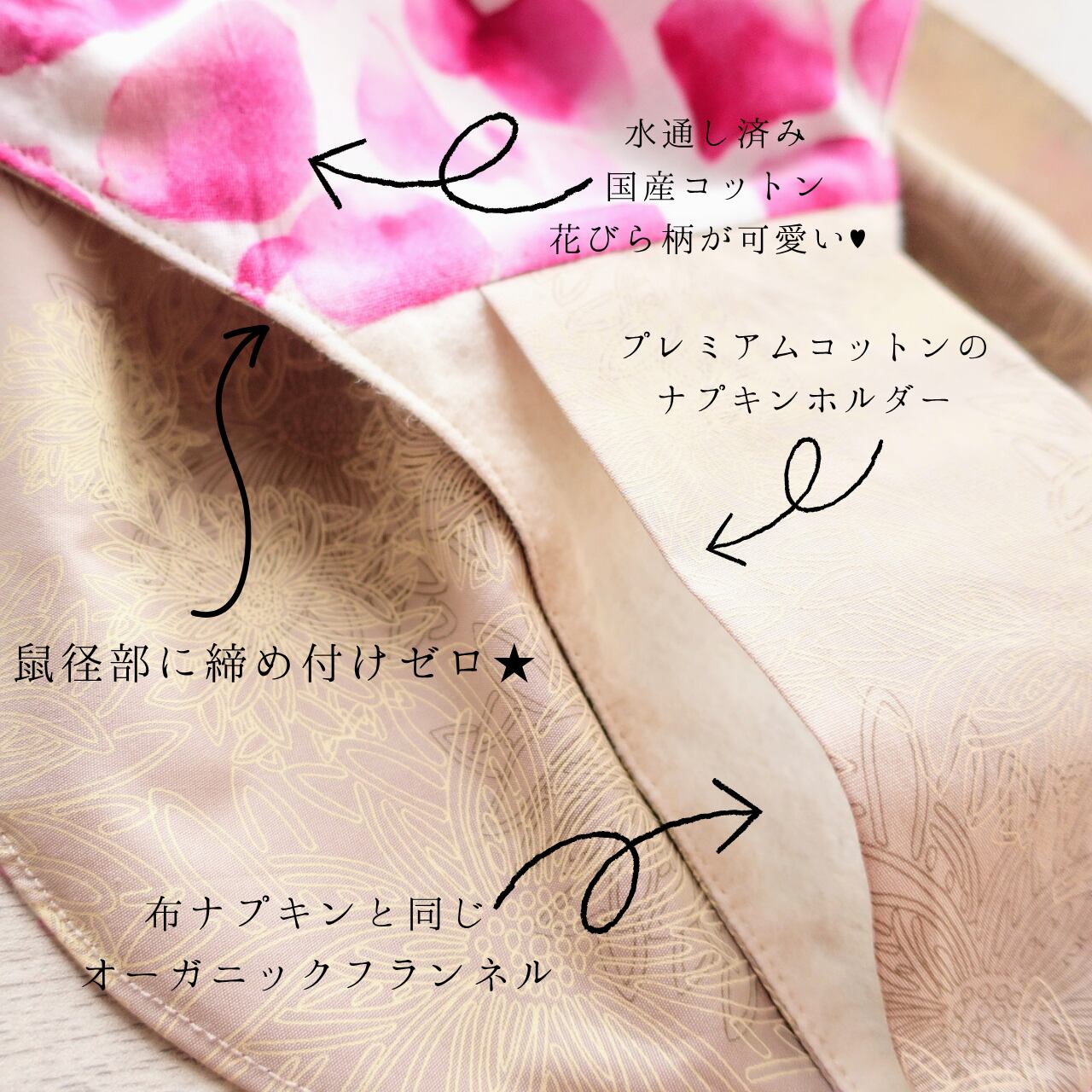 布ナプキン、布ライナーもズレなく使用できます。